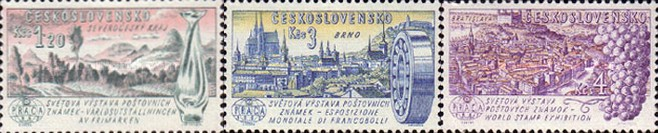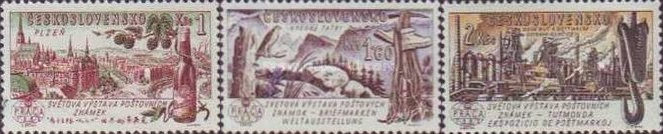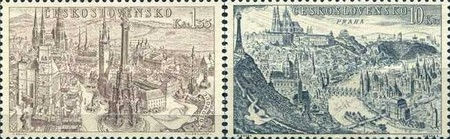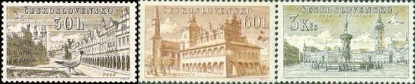 Czechoslovakia 1965 "700th Anniversary of Six Czech Towns and 20th Anniversary of Terezin Concentration Camp" (7,7,7) [Engr (J. Mracek)(J. Hercik)(B. Housa)(L. Jirka)][Recess] Sc(1282,...,1288) [ image credit of Stampworld ]
